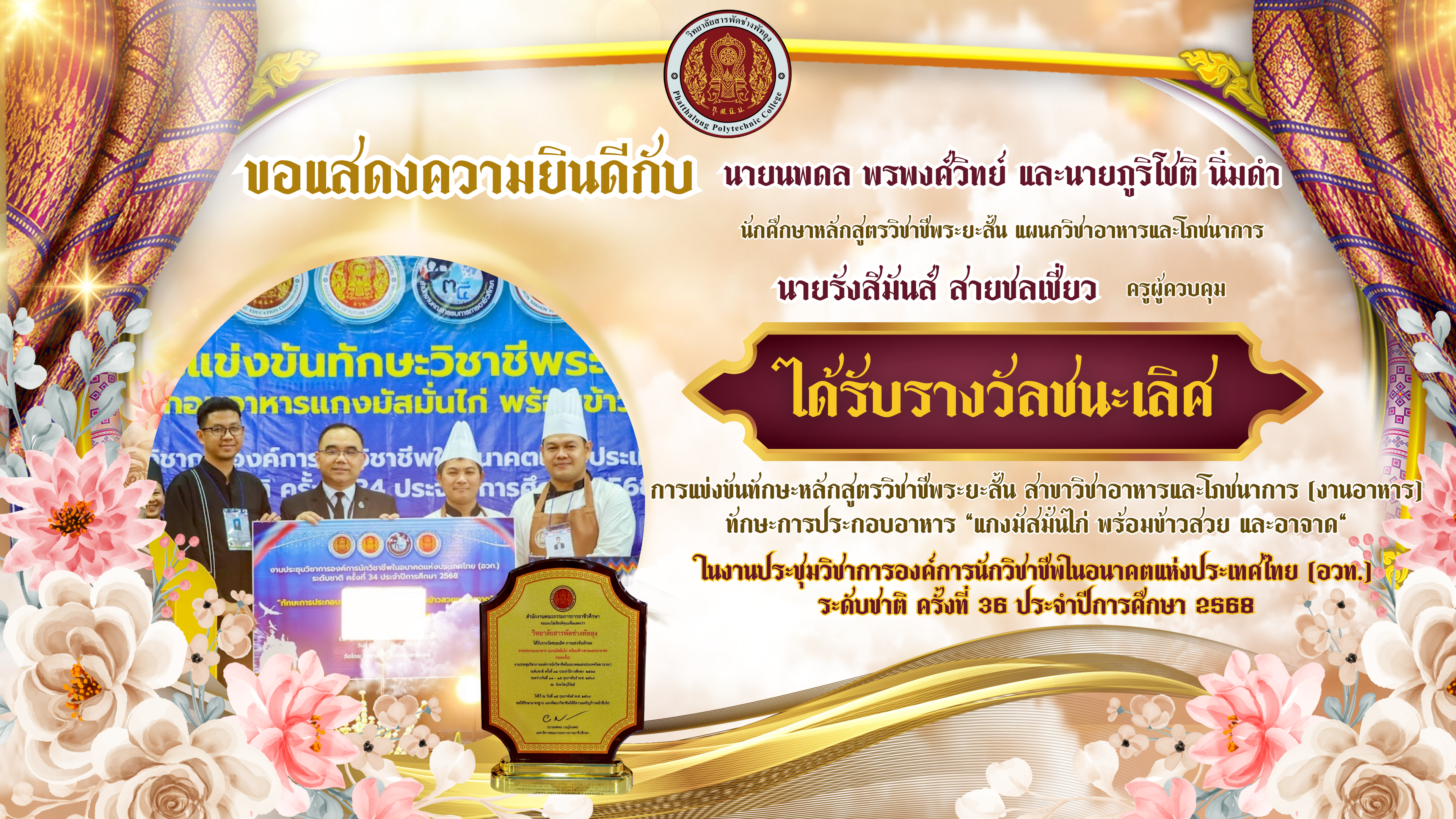 ประกาศวิทยาลัยสารพัดช่างพัทลุง เรื่อง ประกาศผลการสรรหากรรมการผู้แทนพระสงฆ์และหรือผู้แทนองค์กรศาสนาอื่นในพื้นที่ 10 ก.พ. 69