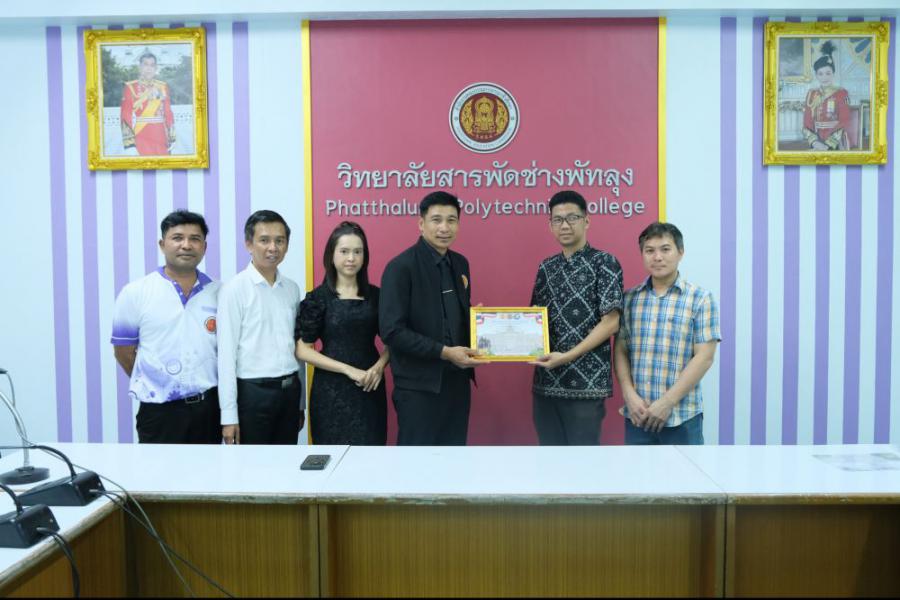 นายภาณุวัฒน์ บุญยะรัตน์ ผู้อำนวยการวิทยาลัยสารพัดช่างพัทลุง พร้อมด้วยคณะบริหารวิทยาลัยสารพัดช่างพัทลุง ร่วมแสดงความยินดีกับนายนพดล พรพงศ์วิทย์ และนายภูริโชติ นิ่มดำ นักศึกษาหลักสูตรวิชาชีพระยะสั้นแผนกวิชาอาหารและโภชนาการ นายรังสิมันส์ สายชลเชี่ยว ครูประจำแผนกวิชาอาหารและโภชนาการ (ครูผู้ควบคุม) ที่ได้รับรางวัล S:0