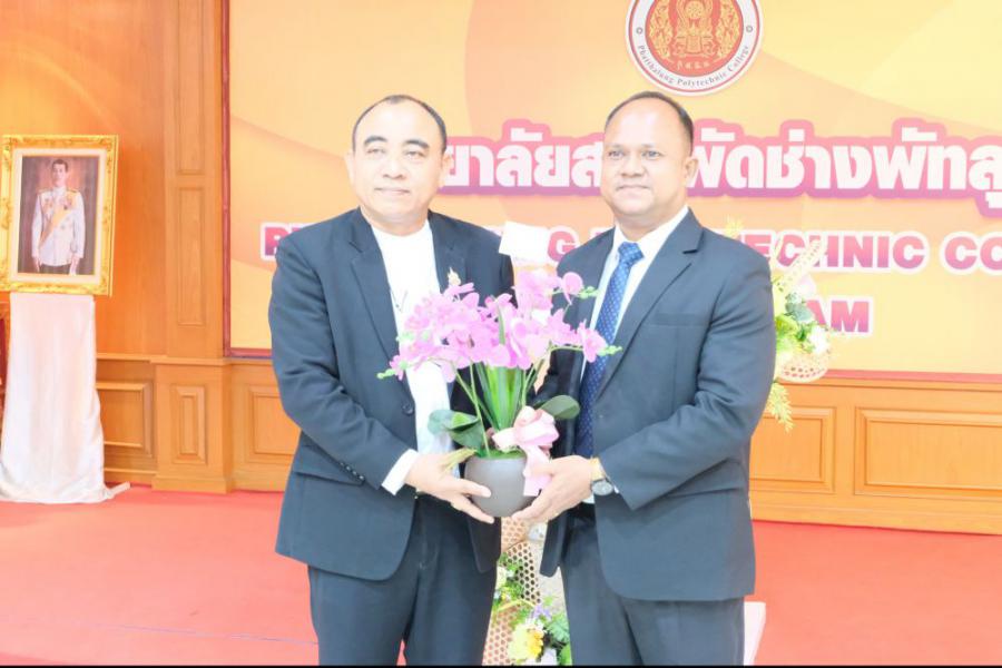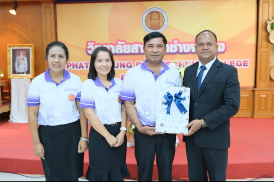 วิทยาลัยสารพัดช่างพัทลุง แสดงความยินดีแก่ นายรักชาติ ปานเพชร รองผู้อำนวยการวิทยาลัยสารพัดช่างพัทลุง เนื่องในโอกาสได้รับบรรจุและแต่งตั้งให้ดำรงตำแหน่ง ผู้อำนวยการวิทยาลัยการอาชีพท่าแซะ จังหวัดชุมพร