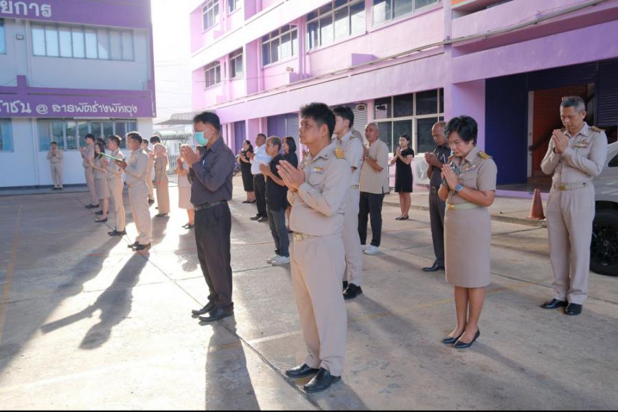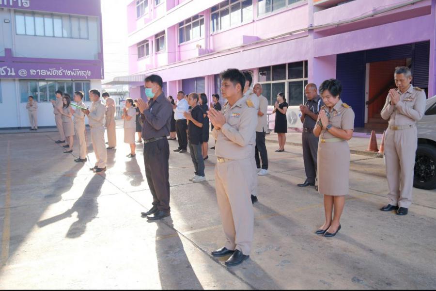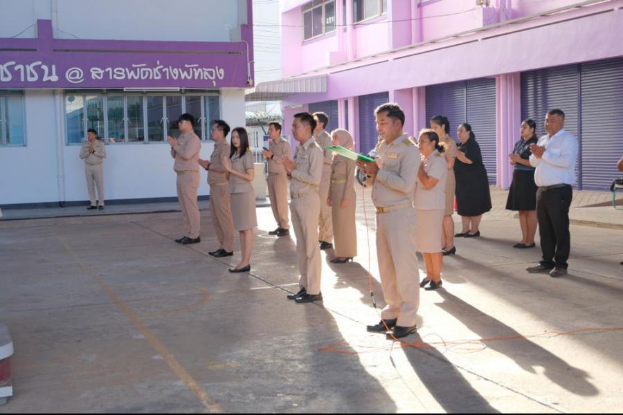 นายภาณุวัฒน์ บุญยะรัตน์ ผู้อำนวยการวิทยาลัยสารพัดช่างพัทลุง พร้อมด้วยคณะผู้บริหาร คณะครู เจ้าหน้าที่ และบุคลากรทางการศึกษาวิทยาลัยสารพัดช่างพัทลุง ???? ร่วมกิจกรรมหน้าเสาธง S:0