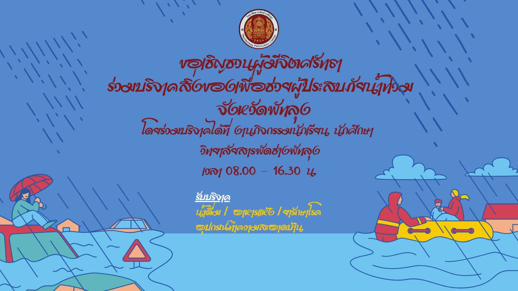 ขอเชิญชวนผู้มีจิตศรัทธาร่วมบริจาคสิ่งของเพื่อช่วยผู้ประสบภัยน้ำท่วม